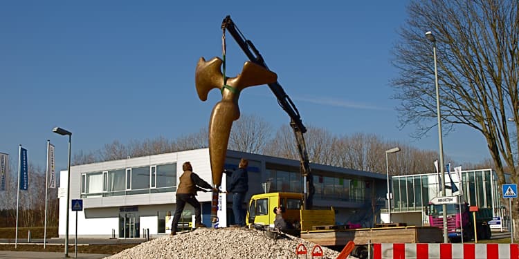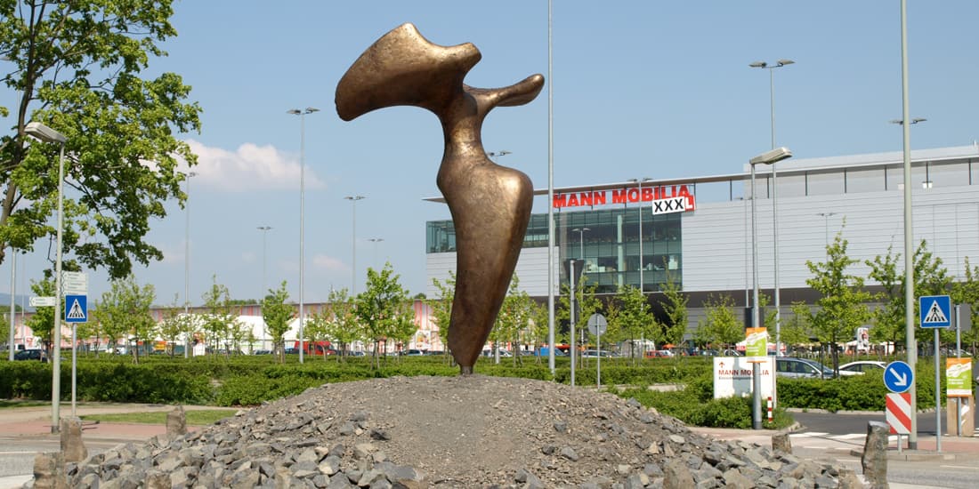 Phönix. Die archaische Kraft des Götter-Vogels, der zyklisch wiederkehrend im eigenen Untergang Erneuerung findet, lebt in Ritters Phönix auf. In Eschborn hat er sich „den Ort gesucht, an den er gehören wollte“ (Ritter). Hier steht er mit gespannt-gesammelter Geste im Anschauen: aufstrebend, unberechenbar, sich überwindend. Wie der Mensch.